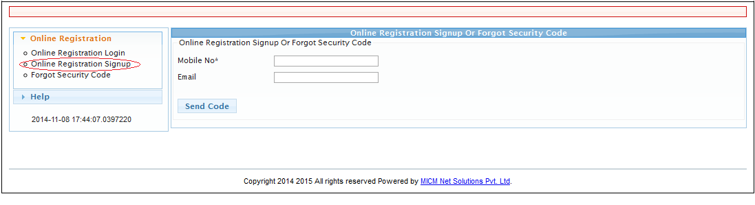 First click Online Registration Signup option from left menu to register as an user.